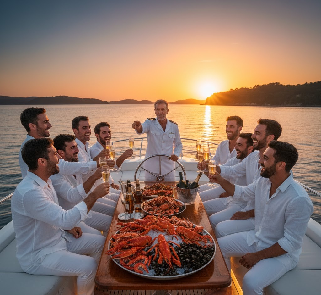 Yate privado, mariscada VIP y barra libre.